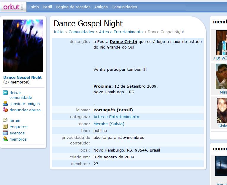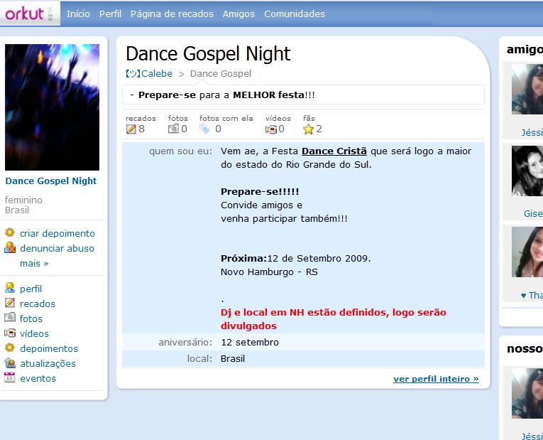 Perfil do Dance Gospel Night no ORKUT